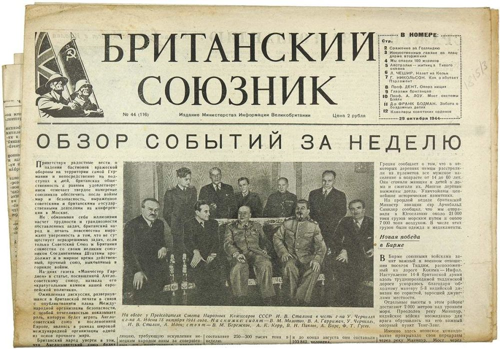 Именно в нашем городе выходила газета «Британский союзник», где для советских граждан рассказывалось о борьбе Великобритании с Германией на фронтах войны. СССР и Англия были заинтересованы в совместном сотрудничестве, так как оставались единственными странами в Европе, кто противостоял немца.
