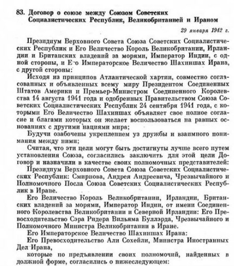 29 января 1942 года в Тегеране был подписан союзный договор между СССР, Великобританией и Ираном, гарантировавший территориальную целостность последнего. Этот договор был результатом работы в Куйбышеве.